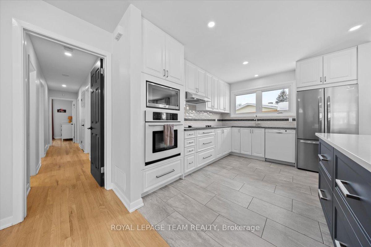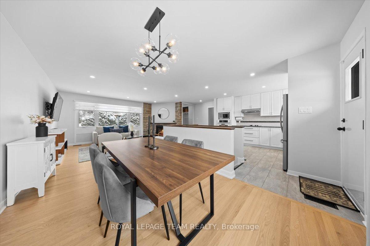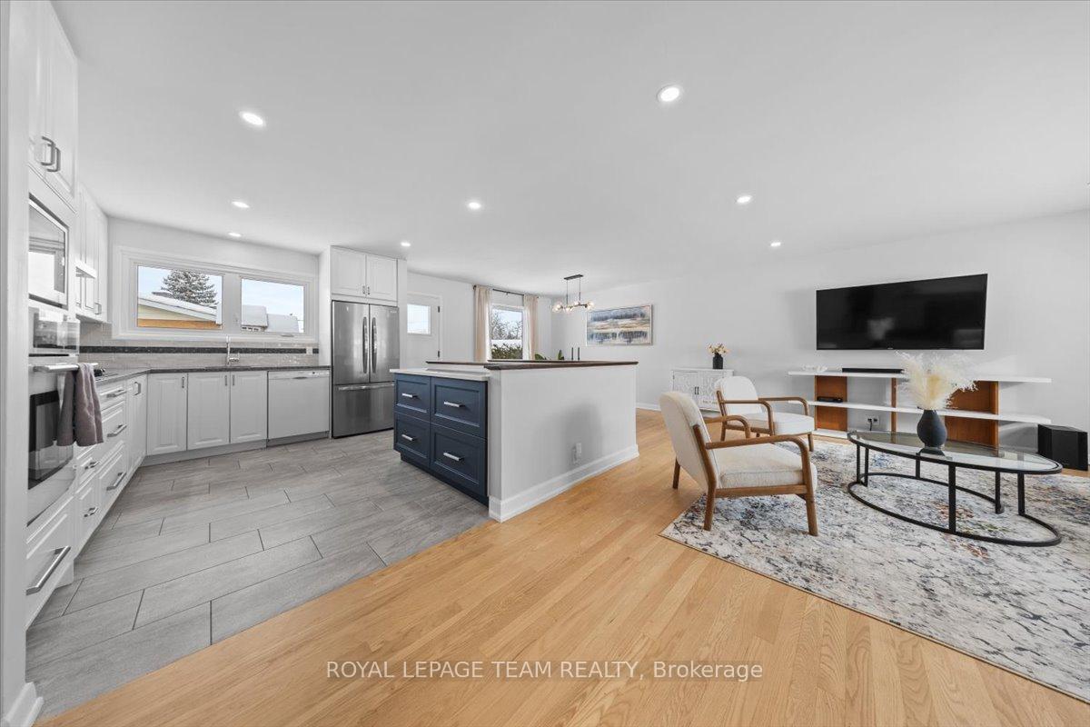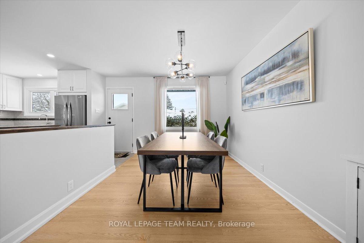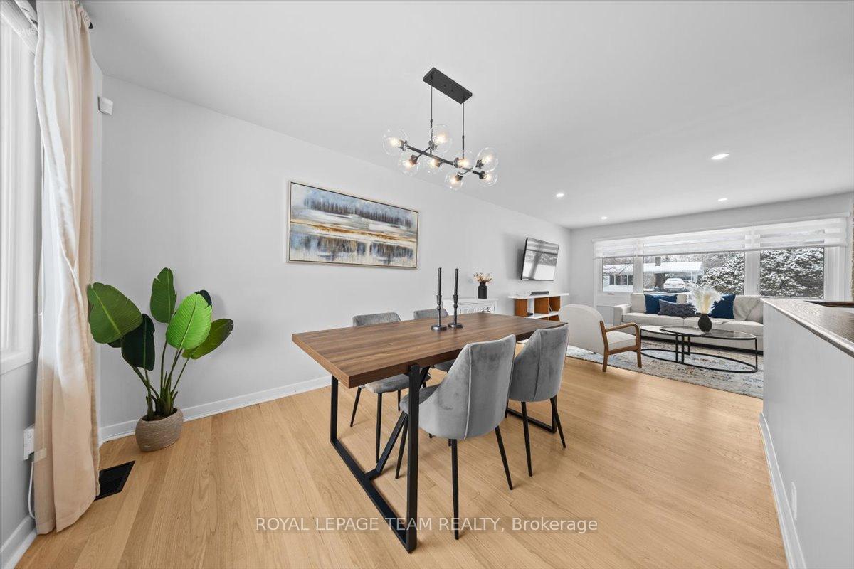 Welcome to this beautifully renovated home, ideally located on a quiet, family-friendly street in the highly sought-after Crystal Beach community. Set on a picturesque corner lot, this home features a fully fenced backyard with interlock patio- perfect for families, pets, and outdoor entertaining. Extensively renovated throughout, this true 4-bedroom home offers rare, move-in-ready living in one of the area's most desirable neighbourhoods. Modern finishes shine in every space, including pot lights throughout creating a bright, clean, and contemporary feel. The open-concept kitchen, living, and dining area showcases quartz countertops, refinished original oak hardwood floors, oversized windows, and seamless flow-flooding the home with natural light and creating a warm, inviting atmosphere. The main level includes a full bathroom and a spacious primary bedroom complete with a convenient half ensuite. Three additional bedrooms provide exceptional flexibility for families, guests, or home office needs. The fully finished basement significantly expands the living space, ideal for a gym, playroom, rec room etc and includes an additional bedroom and a full bathroom. Walking distance to schools, parks, Ottawa River, DND, and everyday amenities.