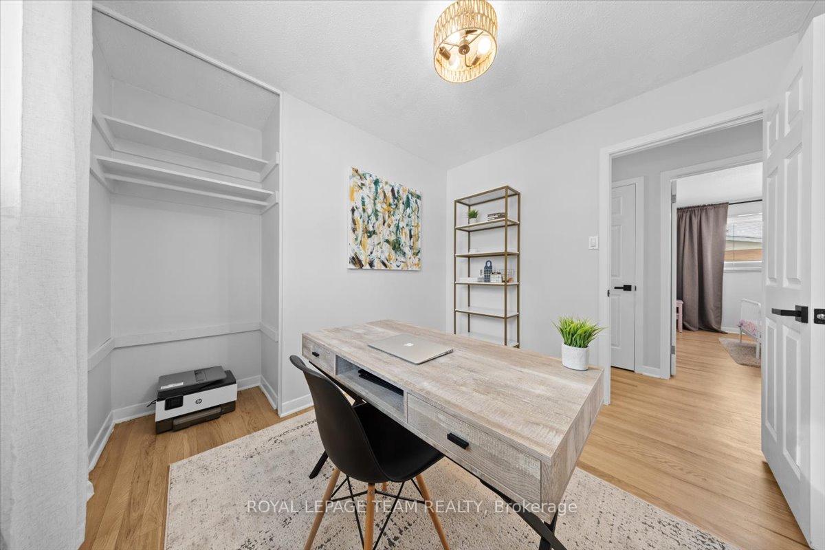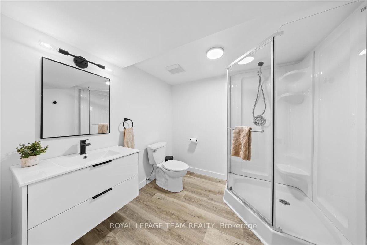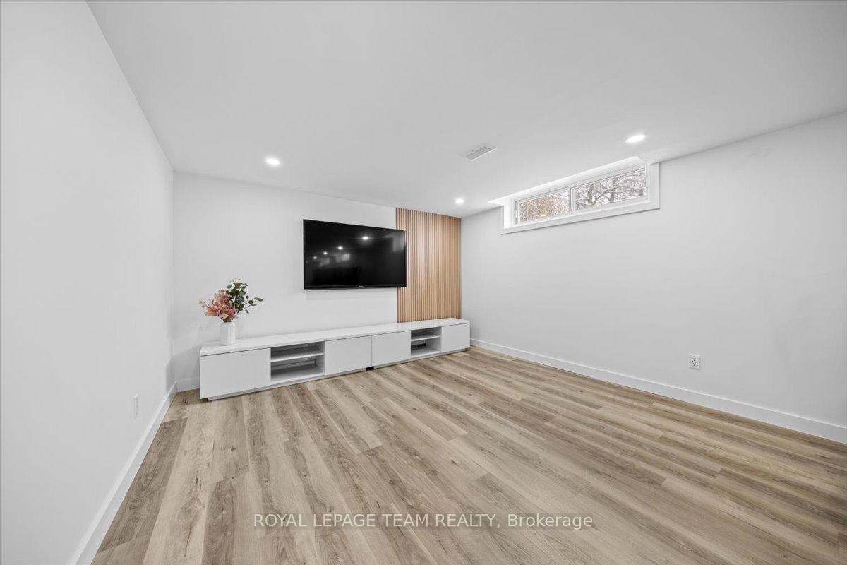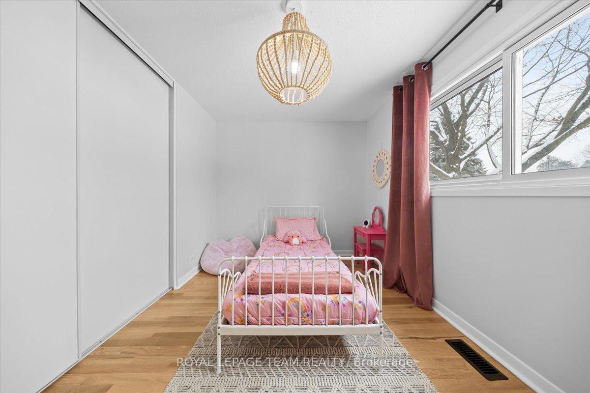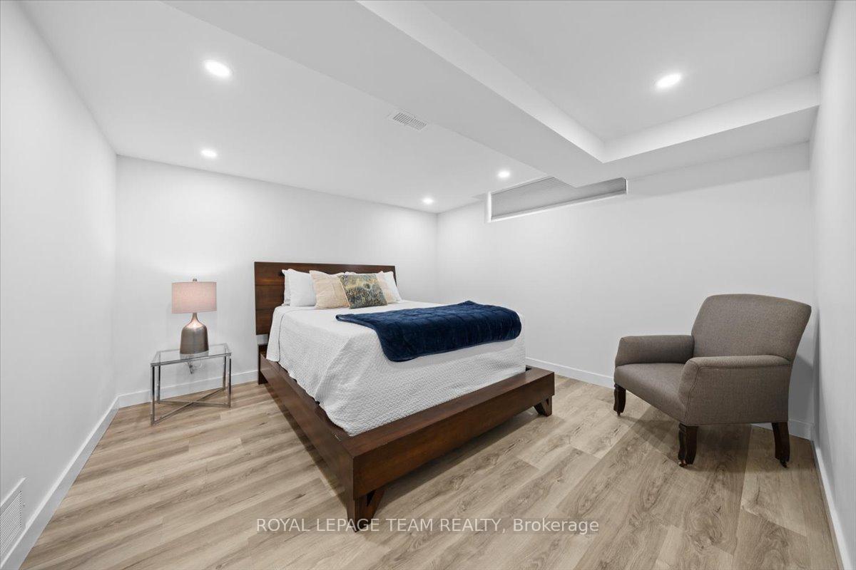 Welcome to this beautifully renovated home, ideally located on a quiet, family-friendly street in the highly sought-after Crystal Beach community. Set on a picturesque corner lot, this home features a fully fenced backyard with interlock patio- perfect for families, pets, and outdoor entertaining. Extensively renovated throughout, this true 4-bedroom home offers rare, move-in-ready living in one of the area's most desirable neighbourhoods. Modern finishes shine in every space, including pot lights throughout creating a bright, clean, and contemporary feel. The open-concept kitchen, living, and dining area showcases quartz countertops, refinished original oak hardwood floors, oversized windows, and seamless flow-flooding the home with natural light and creating a warm, inviting atmosphere. The main level includes a full bathroom and a spacious primary bedroom complete with a convenient half ensuite. Three additional bedrooms provide exceptional flexibility for families, guests, or home office needs. The fully finished basement significantly expands the living space, ideal for a gym, playroom, rec room etc and includes an additional bedroom and a full bathroom. Walking distance to schools, parks, Ottawa River, DND, and everyday amenities.